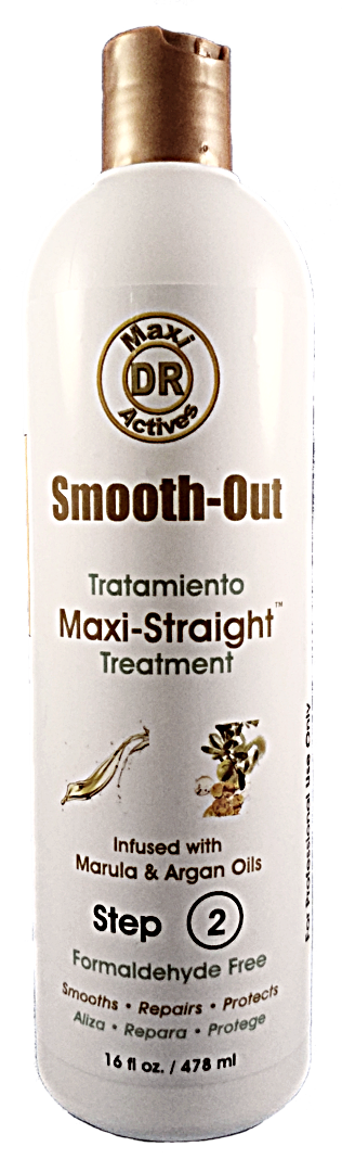 Maxi-Straight™ Treatment (Step 2) is a new, super-efficient, formaldehyde-free, straightening treatment. Formulated with Hyaluronic and Glycolic Acids, Panthenol, Hydrolyzed Keratin, natural proteins, and the nutritive, sustainable, anti-aging, anti-microbial, reparative oils of Marula and Argan to: penetrate and seal the cuticle, straighten, eliminate frizz, repair,revitalize, restore tensile strength & shine without altering the chemical structure of the hair.