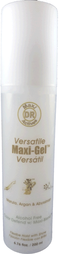 Maxi-Gel™ is a versatile, alcohol-free, multifunctional styling aid that's designed to provide multiple levels of hold, shine, and flexibility, without flaking. Formulated with our Maxi-Blend™ of 5 nutritive, anti-aging, antimicrobial, restorative oils: Marula, Argan, Abyssinian, Baobab and Sunflower, combined with Macadamia Glycerides, Panthenol, and Silk Amino Acids, to infuse nutritive conditioners into the follicle to strengthen, moisturize and revitalize both hair and scalp. These special properties help to provide protection from: Thermal Styling, premature aging of both hair and scalp, UV rays, and environmental stress; while preventing premature degradation of treatments, loss of vigor and the discoloration of natural or tinted hair.