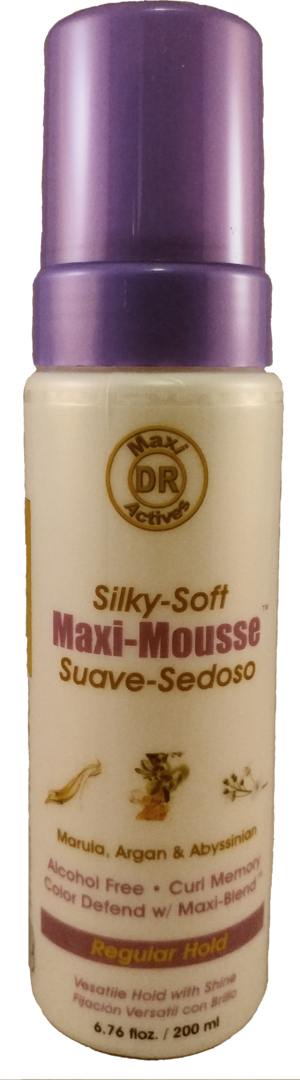 Maxi-Mousse™ Regular Hold is an Anti-Frizz, alcohol-free, non V-O-C, Multipurpose, Silky-Soft styling mousse, with Curl-Memory, Long-Lasting hold, and shine. Formulated with our Maxi-Blend™ of 5 nutritive, anti-aging, antimicrobial, restorative oils: Marula, Argan, Abyssinian, Baobab, and Sunflower, combined with Macadamia Glycerides, Panthenol and Silk Amino Acids; to infuse nutritive conditioners into the follicle, to strengthen, moisturize, and revitalize, both hair and scalp. These special properties help to provide protection from Thermal Styling, premature aging of both hair and scalp, UV rays, and environmental stress; while preventing premature degradation of treatments, loss of vigor and the discoloration of natural and tinted hair.