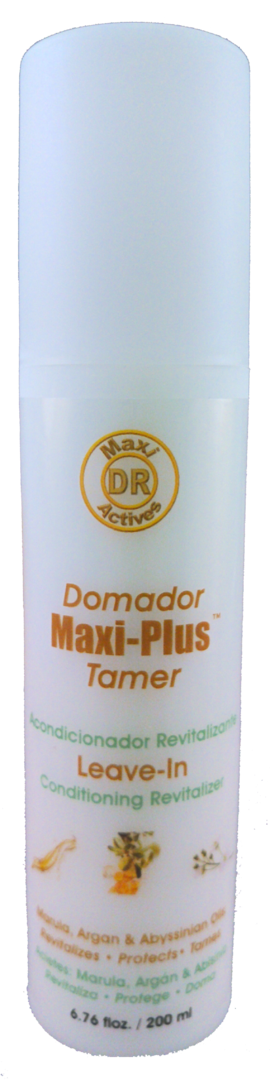Maxi-PlusTM Tamer is a Concentrated-Silky-Multipurpose Styling-Complex that texturizes the hair, for ease of styling, and to tame the most difficult-unruly hair. Formulated with our Maxi-Blend™ of 5 nutritive, anti-aging, antimicrobial, restorative oils: Marula, Argan, Abyssinian, Baobab, and Sunflower, combined with Macadamia Glycerides, Panthenol and Silk Amino Acids; to infuse nutritive conditioners into the follicle; to strengthen, moisturize, and revitalize, both hair and scalp. These special properties help to provide protection from; Thermal Styling, premature aging of both hair and scalp, UV rays, and environmental stress; while preventing premature degradation of treatments, loss of vigor, and the oxidation of natural and tinted hair.